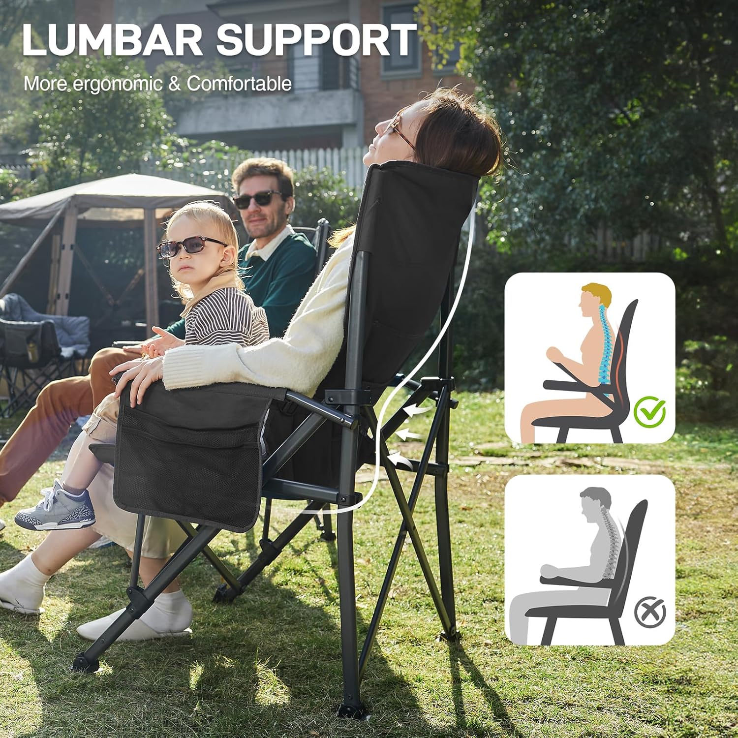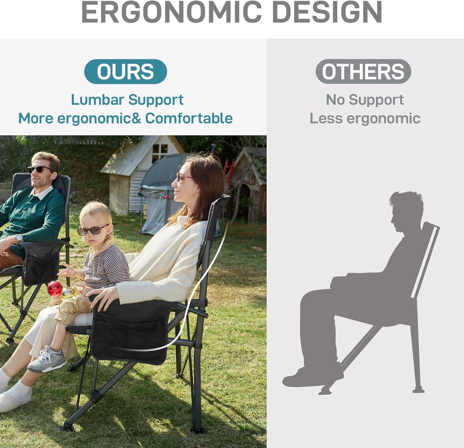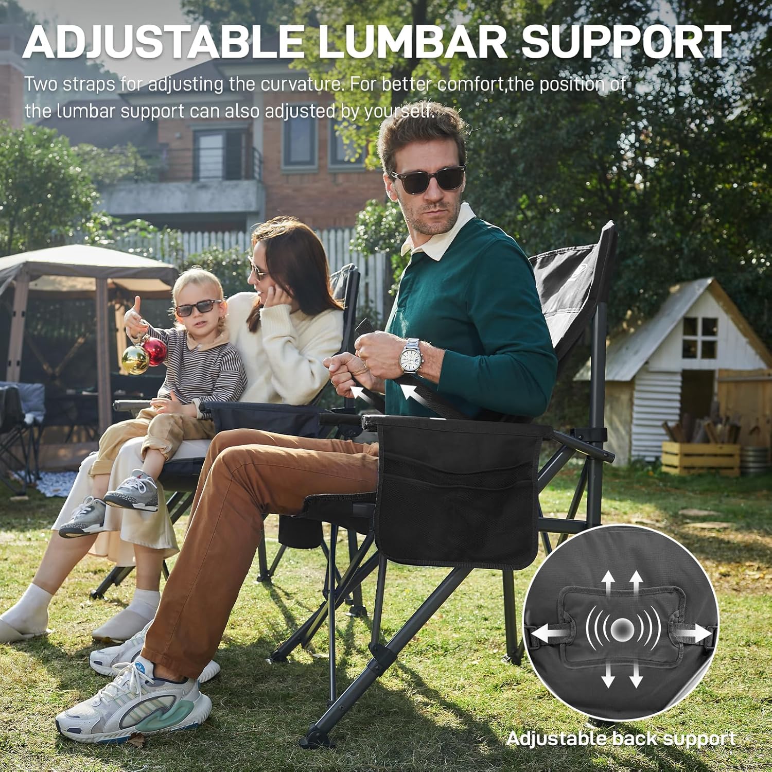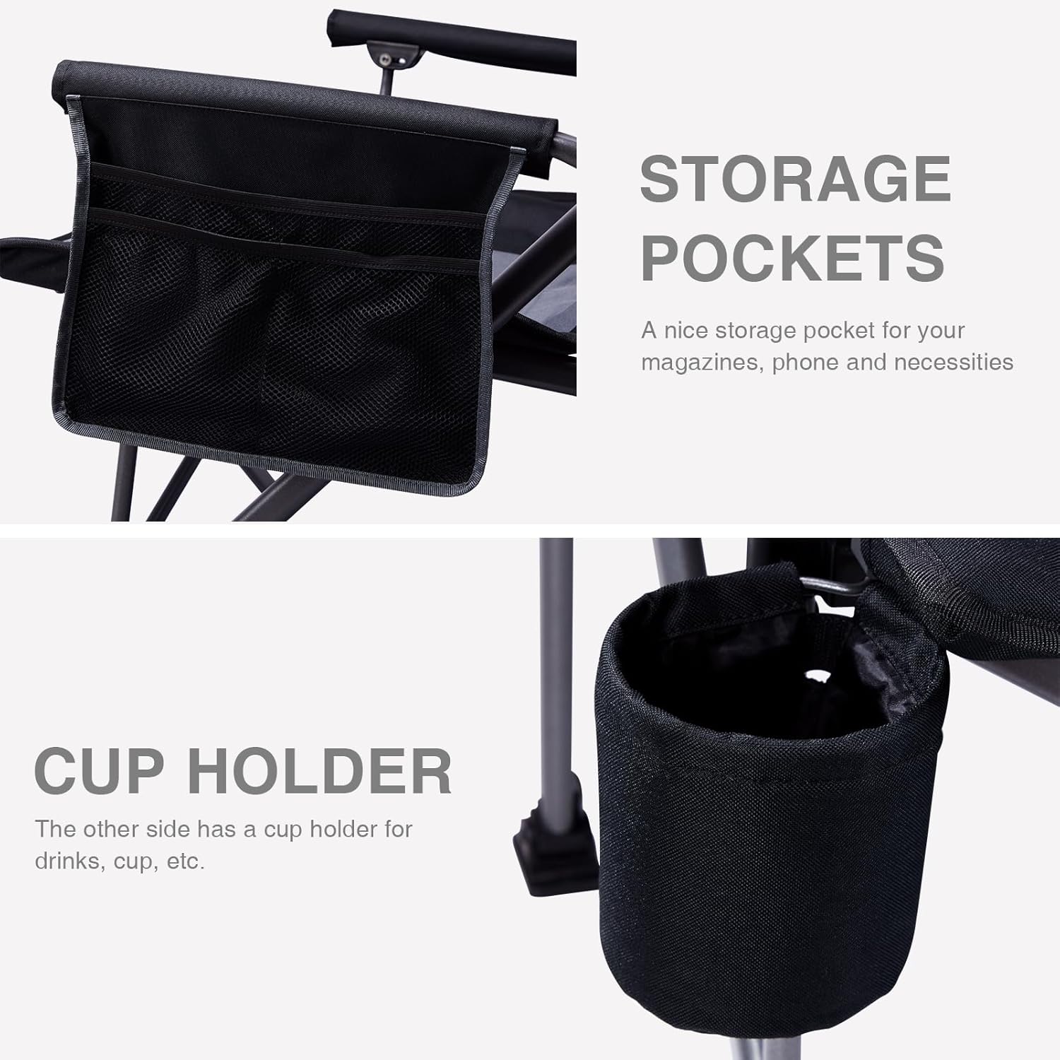 Crafted with premium materials, this chair is built to last, supporting weights of up to 500lbs with ease. The sturdy construction guarantees stability on any terrain, making it the perfect companion for camping trips, beach days, tailgating events, or backyard barbecues.